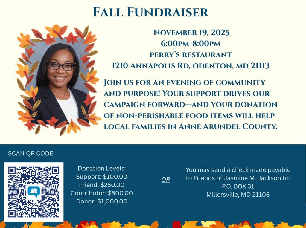 “I’m proud to endorse Jasmine M. Jackson for Anne Arundel County Register of Wills! With over 16 years of experience – from clerk to Chief Auditor to Register – Jasmine knows the office inside and out. She’s brought stability, integrity and compassion to families during some of life’s toughest moments. A lifelong county resident, Jasmine’s proven leadership and dedication make her the right choice to serve our community with professionalism and heart.”